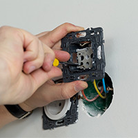 古いスイッチを取り外し、新しいスイッチを専用工具で確実に接続します。長年の経験に基づいた手際の良さと正確さが、DIYとの大きな違いです。