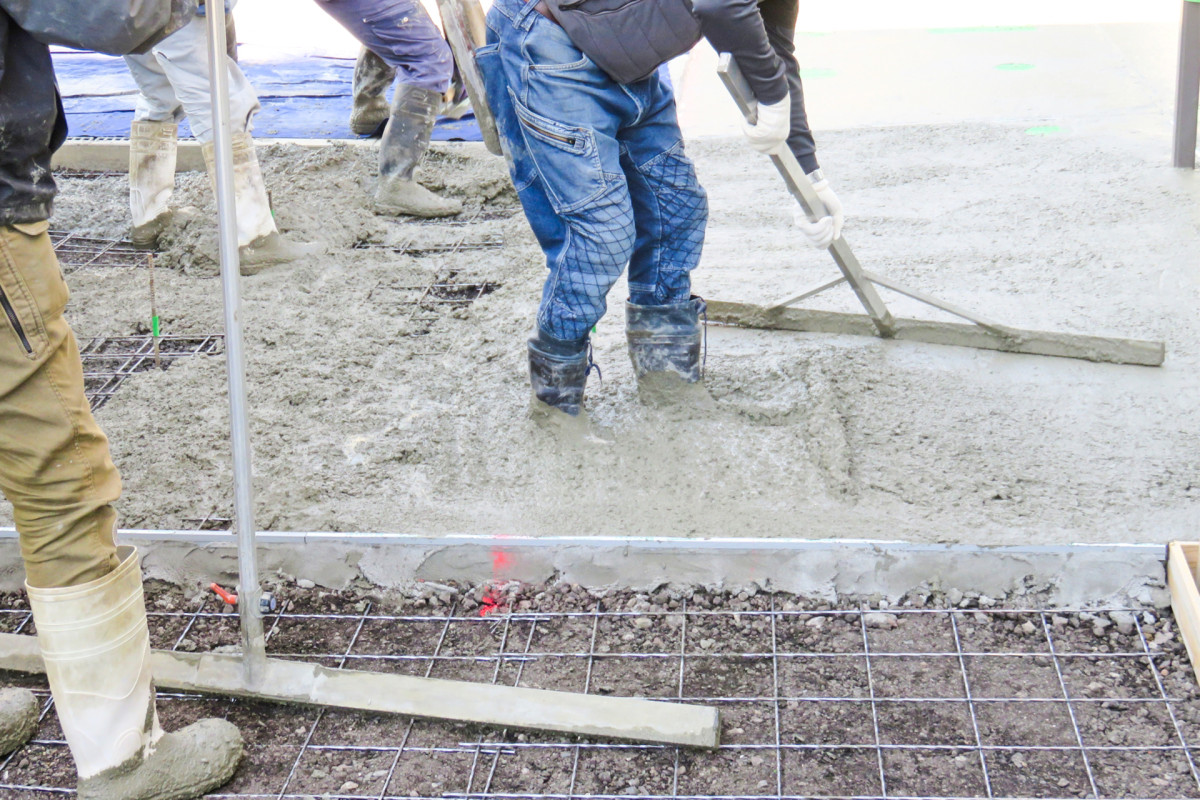 コンクリート打設:柱の根元をコンクリートで固めます。