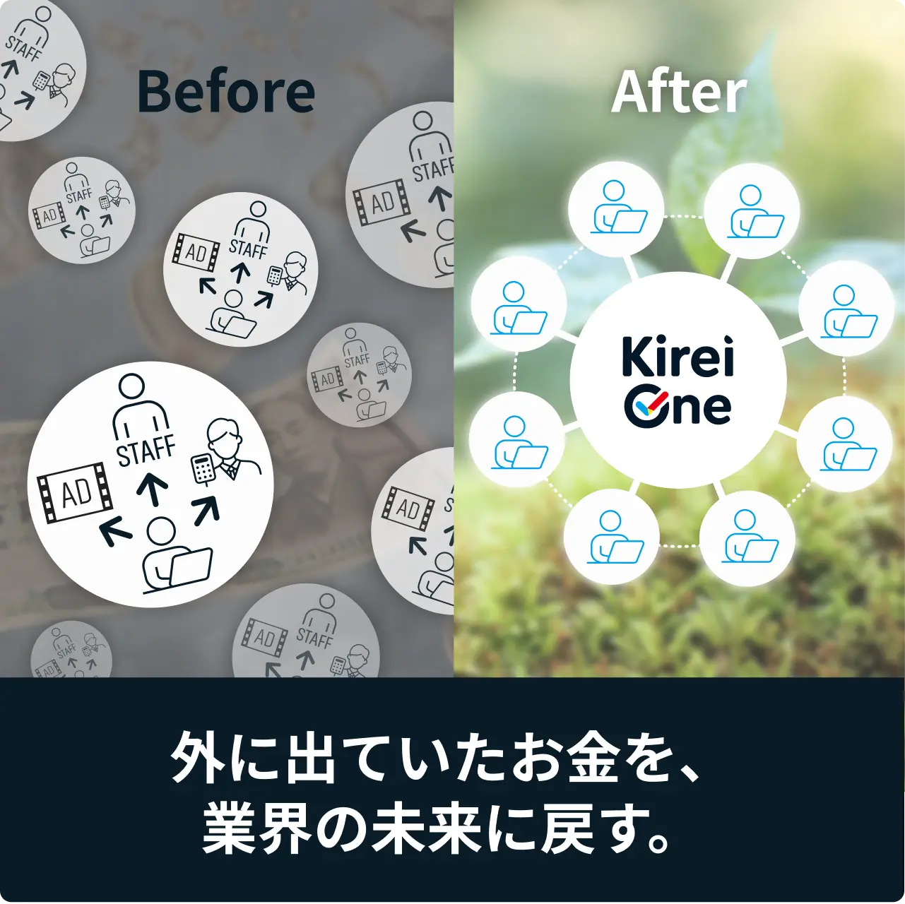 Kirei Oneは、業界外に流れていたお金を「業界の成長につながるチカラ」へ変えていきます。