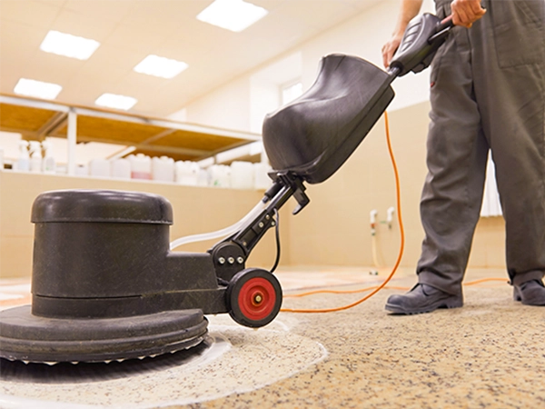 | ポリッシャー | 床面の洗浄やワックスがけに使用する電動式の清掃機械です。回転するブラシやパッドで床を磨き上げ、手作業では落としきれない汚れも効率よく洗浄できます。 |