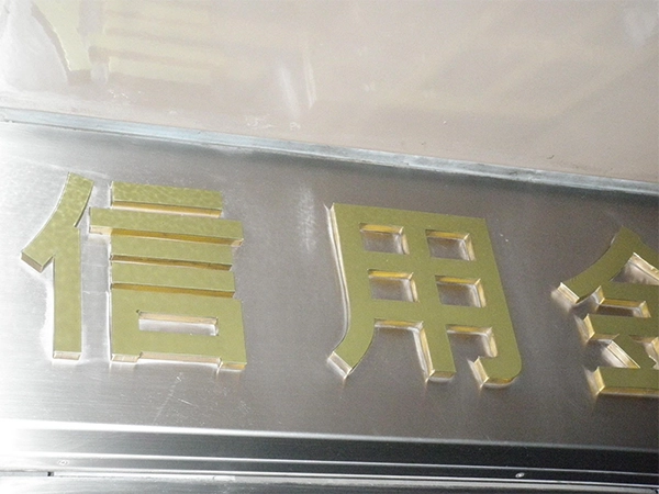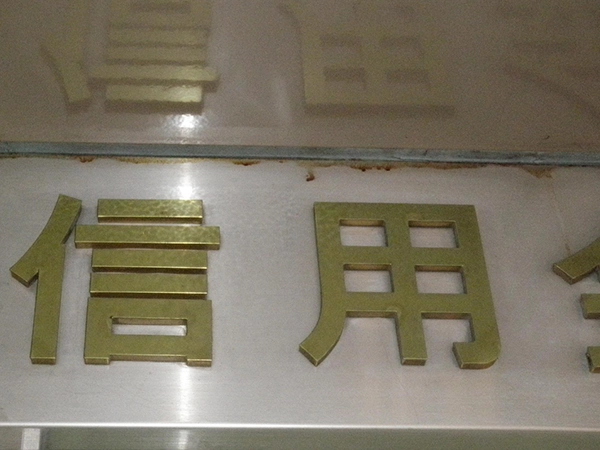 信用金庫エントランス上部の金属切文字看板(切文字サイン)の清掃実績