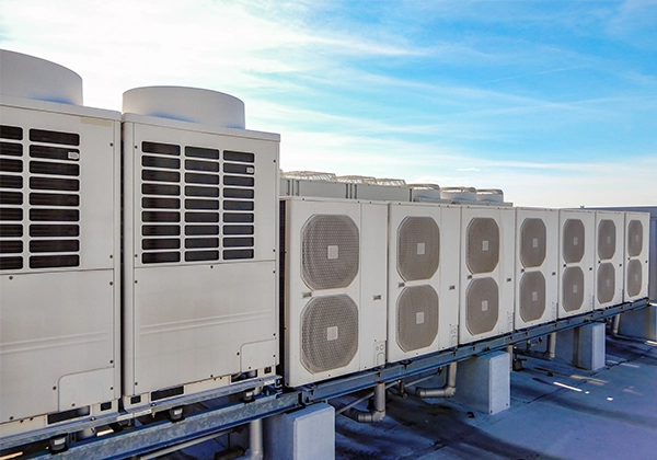 | 空冷ヒートポンプ | 空気中の熱を利用して冷暖房を行う空調方式の一種です。外気から熱エネルギーを取り込み冬は暖房、夏は冷房に活用するため、電気ヒーターに比べて省エネ性能に優れます。水を使わず空気で熱交換を行うため、ビルや施設の空調設備として広く採用されています。 |