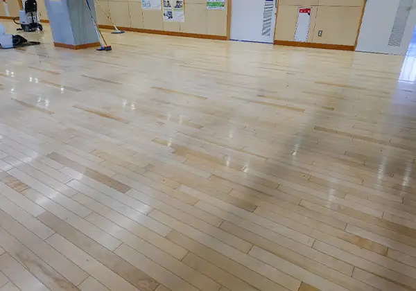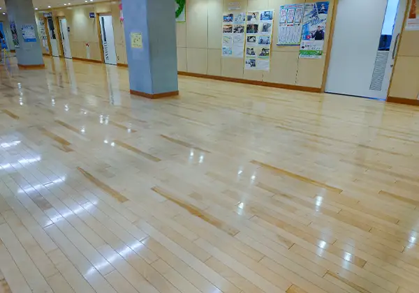 | ワックスがけ | 床面にワックス(樹脂)を塗布し、保護膜を作って光沢を与える作業です。床材を摩耗や汚れから守り、ピカピカの光沢で美観を向上させます。 |