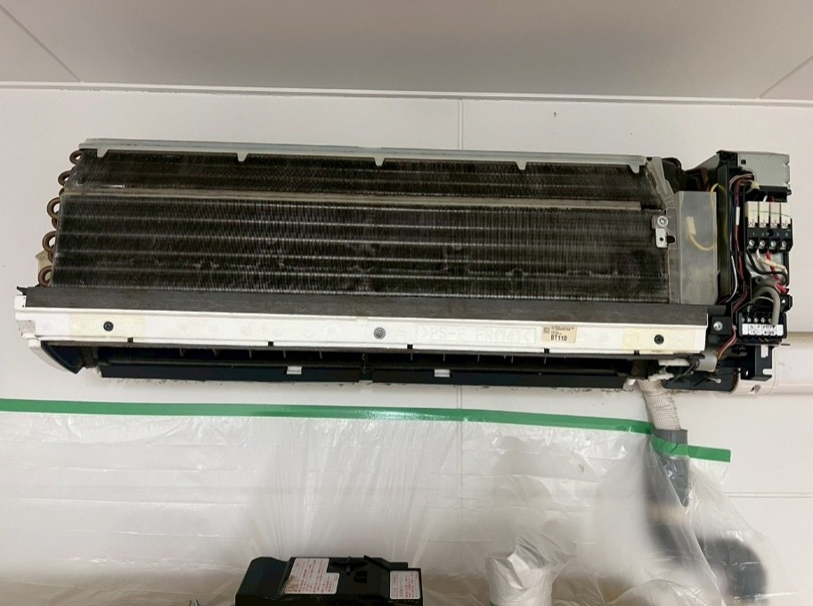 埼玉県パン屋厨房のエアコン清掃レポート:壁掛けパッケージエアコン分解洗浄の施工事例