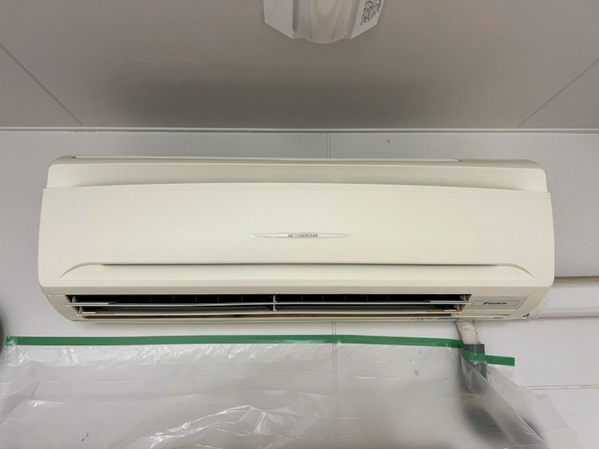 試運転と事前確認:清掃前にエアコンの電源を入れ、冷房運転が正常に行えるか確認しました。