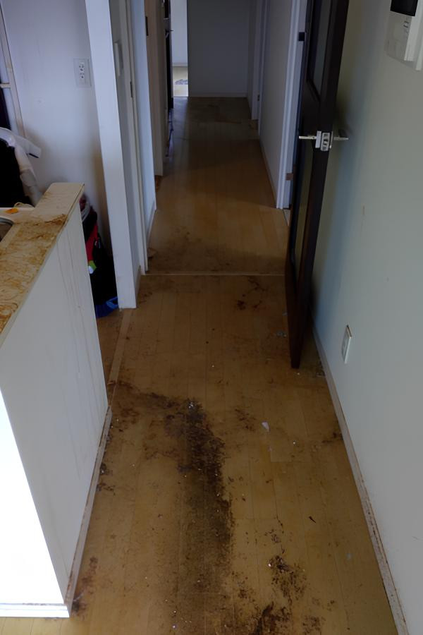 入室した瞬間、私も思わず言葉を失うほどで、カビ臭さと汚染状況から孤独死現場に近い印象すら受けました。