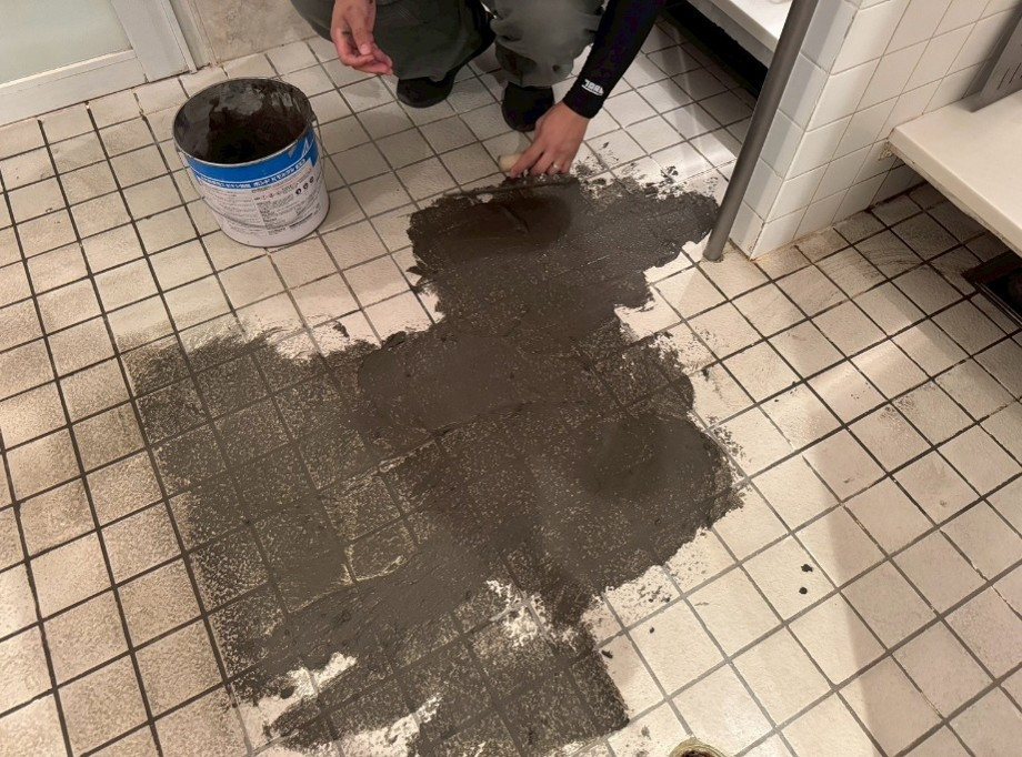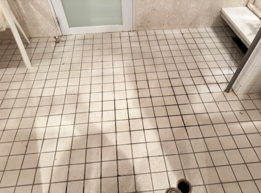 浴室床タイル補修とカビ除去|埼玉県エステサロン・シャワー室のプロ施工事例