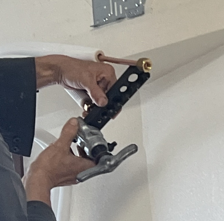 室内では、銅管をフレアツールで均一な拡管加工を行い、トルクレンチでメーカー推奨値(4.2N・m)にて締結。(画像15)