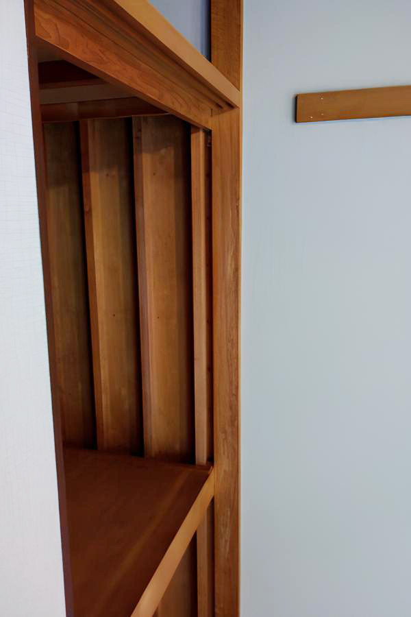 一方で、窓枠・障子枠、襖(ふすま)の縁、押入れ戸の枠、廻り縁や長押といった木部は経年の黒ずみで古びた印象のままでした。