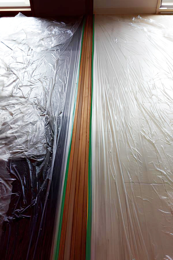現場担当コメント:「最初の養生を丁寧にしておけば、床や壁を傷つける心配もないし、作業中も安心です。