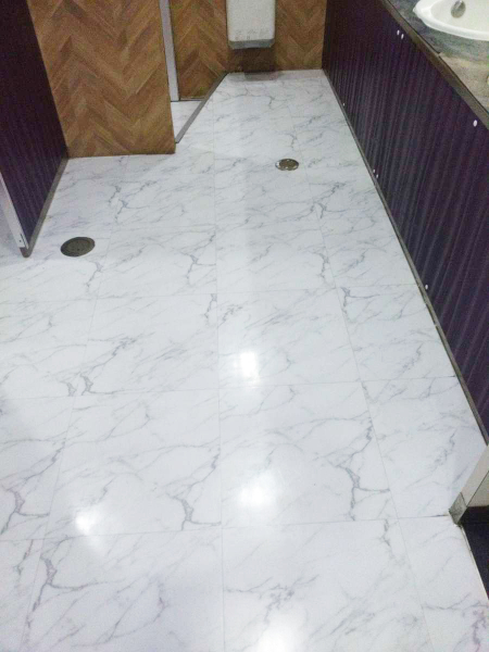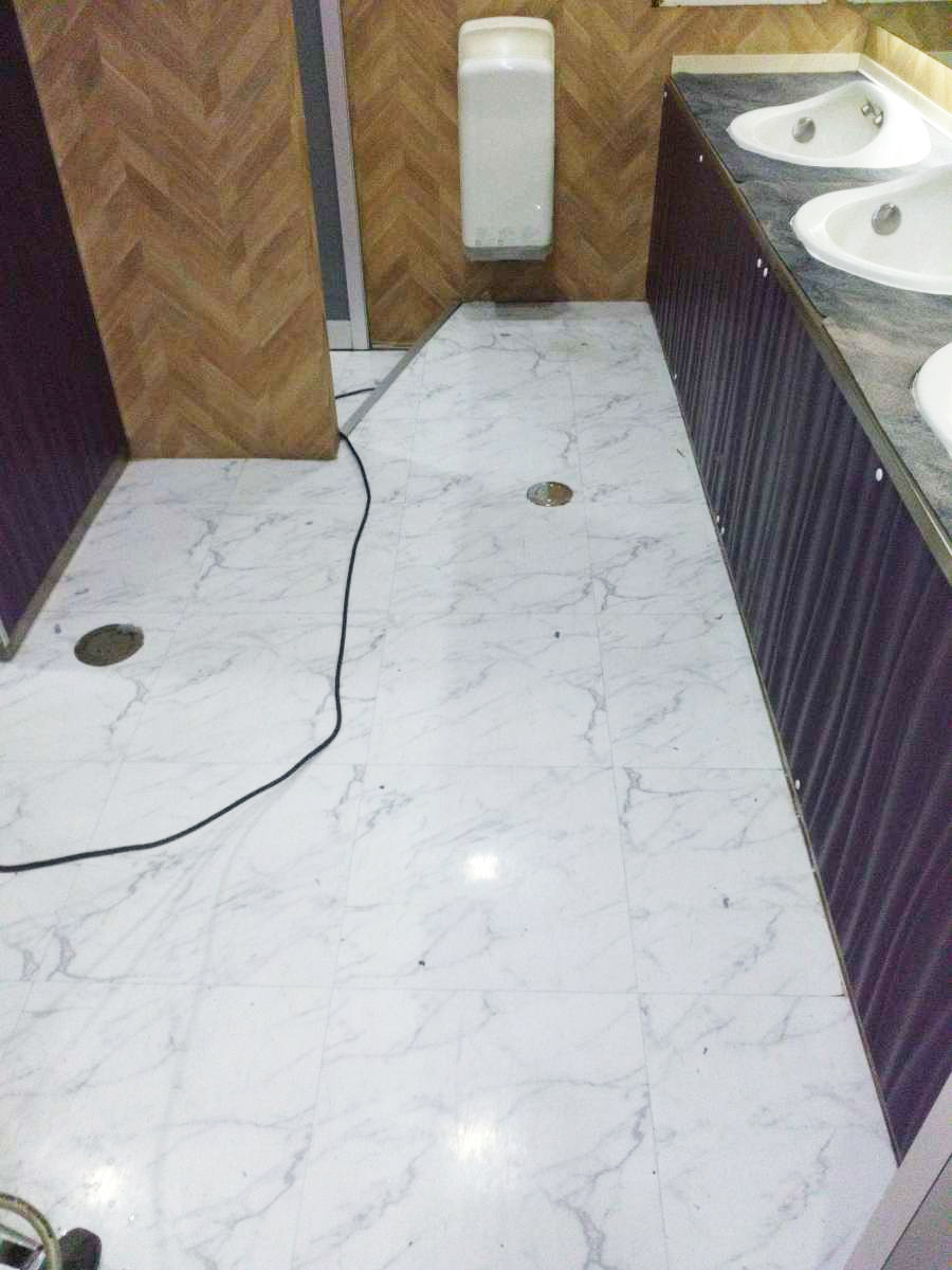もちろん多目的トイレも含め、全エリアの仕上げとして床面洗浄を行いました。