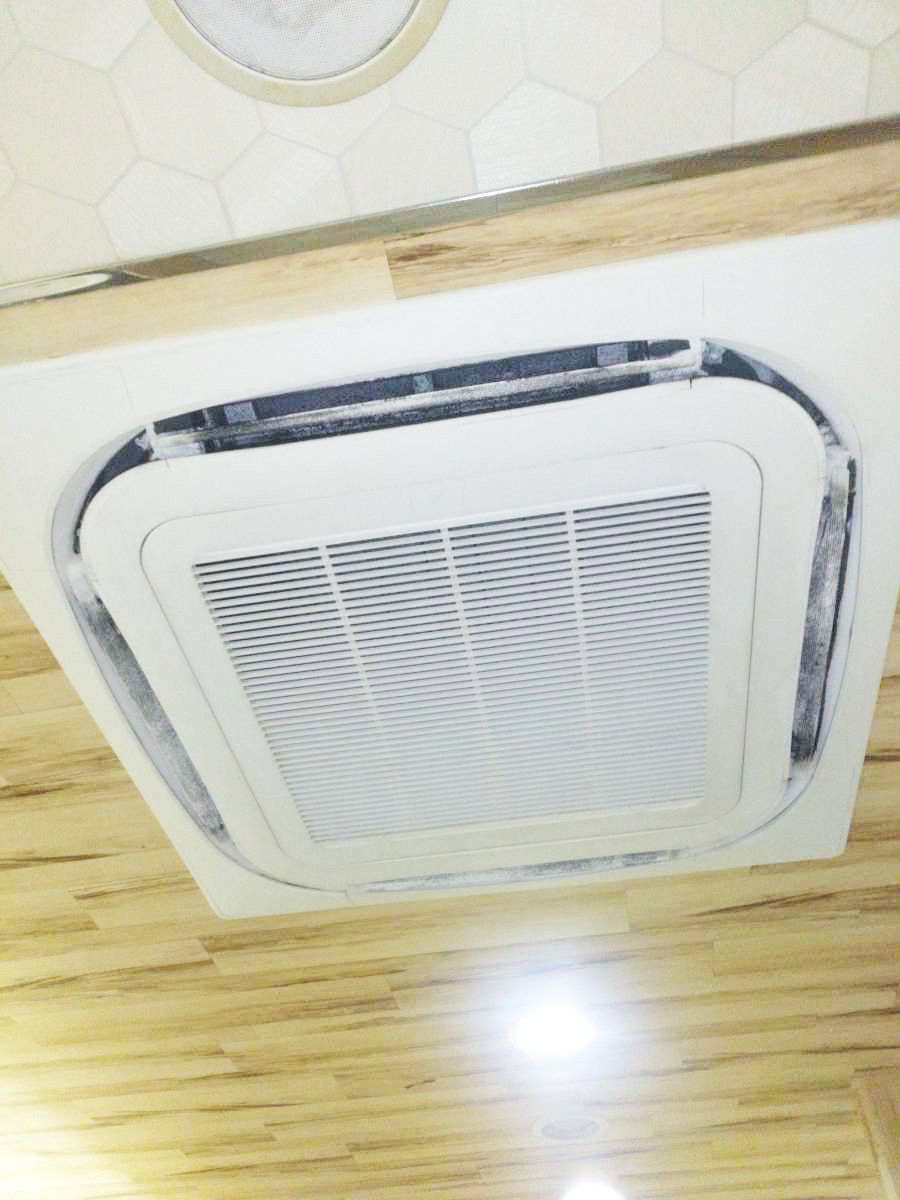 また、天井埋込型のエアコン吹き出し口も表面のホコリを拭き取りました。