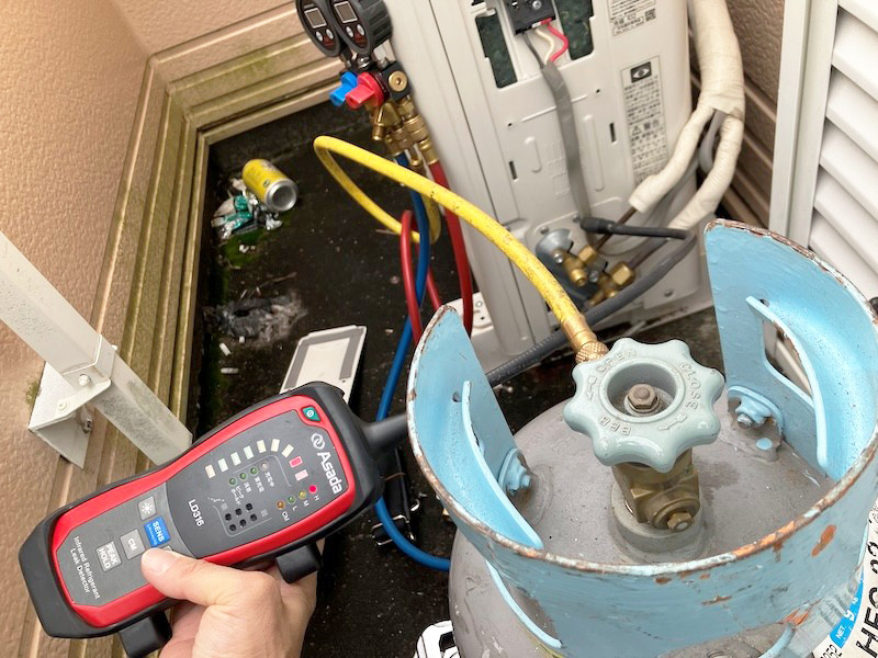 冷媒を充填するだけでなく、今後再度ガスが減ってしまうようなガス漏れがないか確認することも重要です。