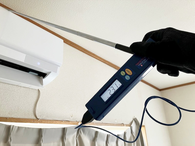 同時に、室内に戻る空気(吸込み口付近)の温度も約23.1℃を示し、吹き出し温度との差が十分に確保されています。