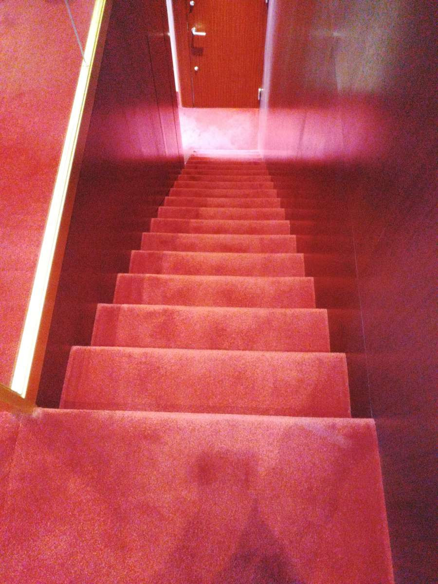 また、階段部分のカーペットはポリッシャーが使えないため、小型ノズルを装着したリンサーで一段一段丁寧に汚れを抽出しました。