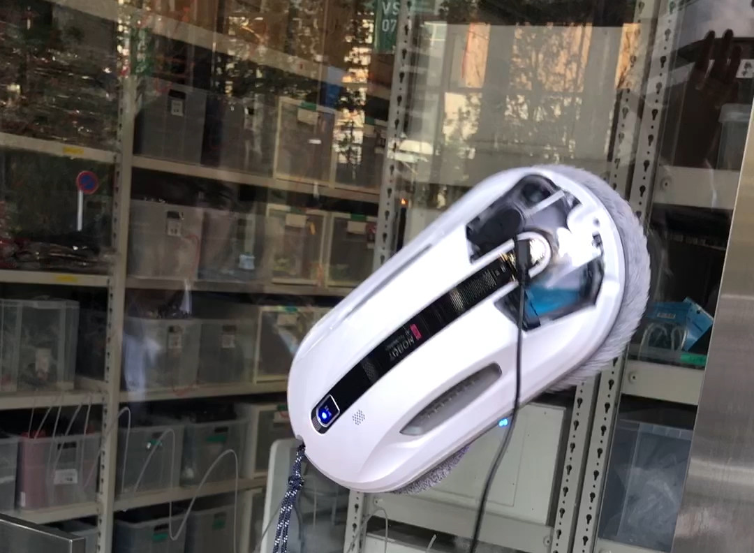吹き抜け部分の大窓は8段脚立に乗っても下端に手が届く程度だったため、ここで窓用ロボット掃除機(HOBOT R3)を導入しました。