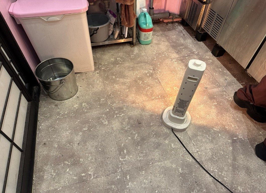 2026年1月、東京都内の飲食店にて、営業時間外(19:00〜24:00)で客席・厨房・台下を中心とした床清掃(機械洗浄)と、入口まわりの看板・意匠部の清掃を実施しました。