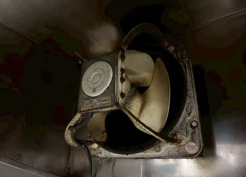 レンジフード(プロペラ部)は、まず電源遮断と落下防止の確認から入りました。