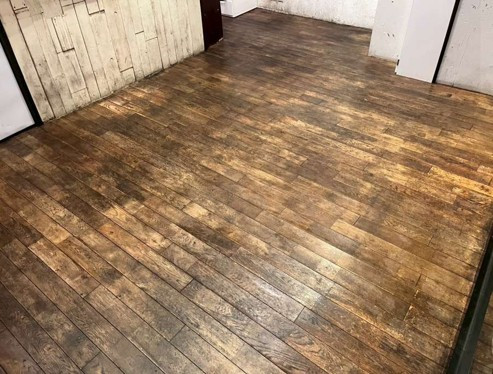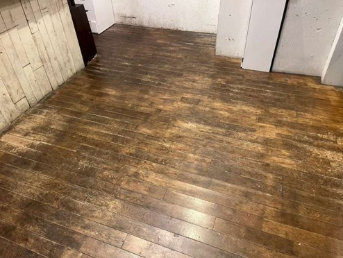 清掃後、店内床の黒ずみは緩和され、入口から見たときの沈み感が軽くなったのが分かります。