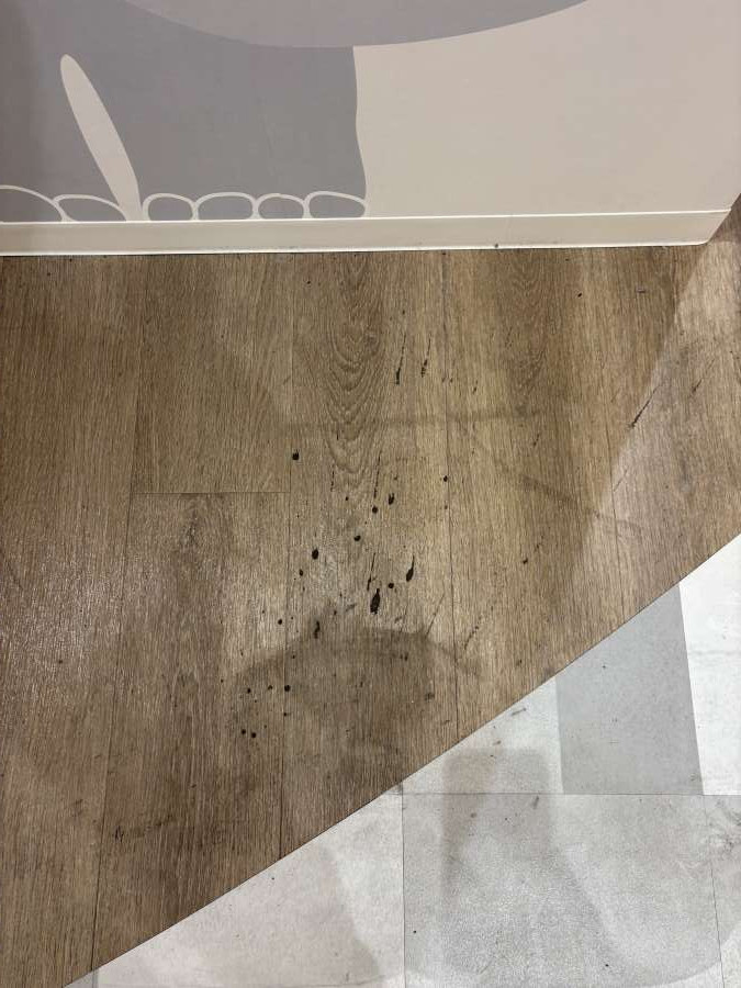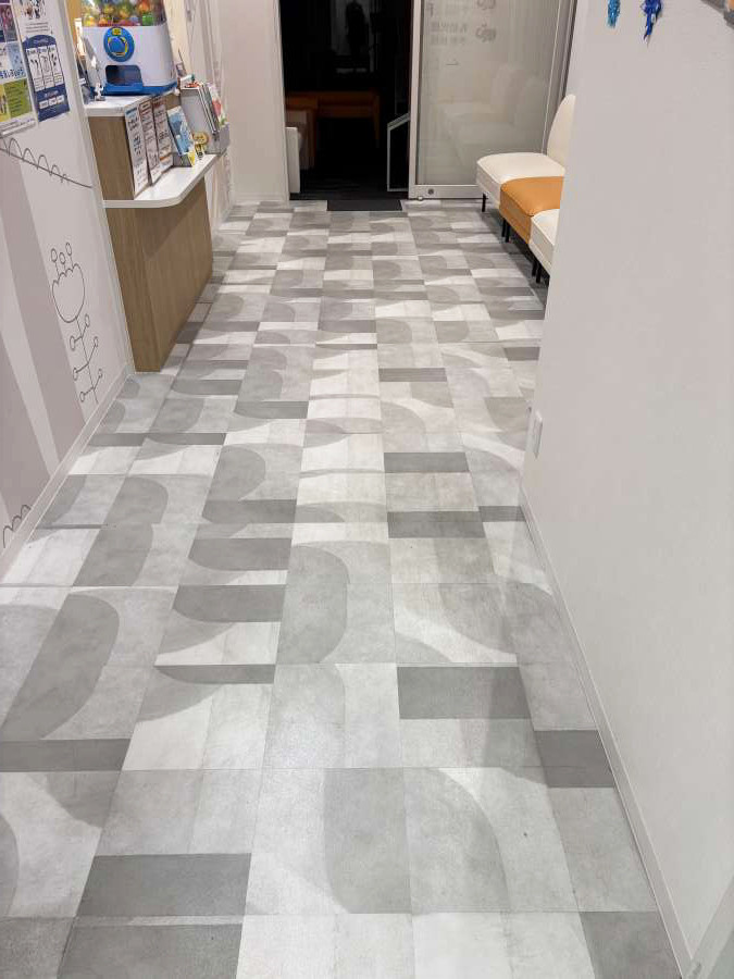作業後、床全体の色のムラが減り、くすみが軽くなって、院内が明るく見える状態になりました。