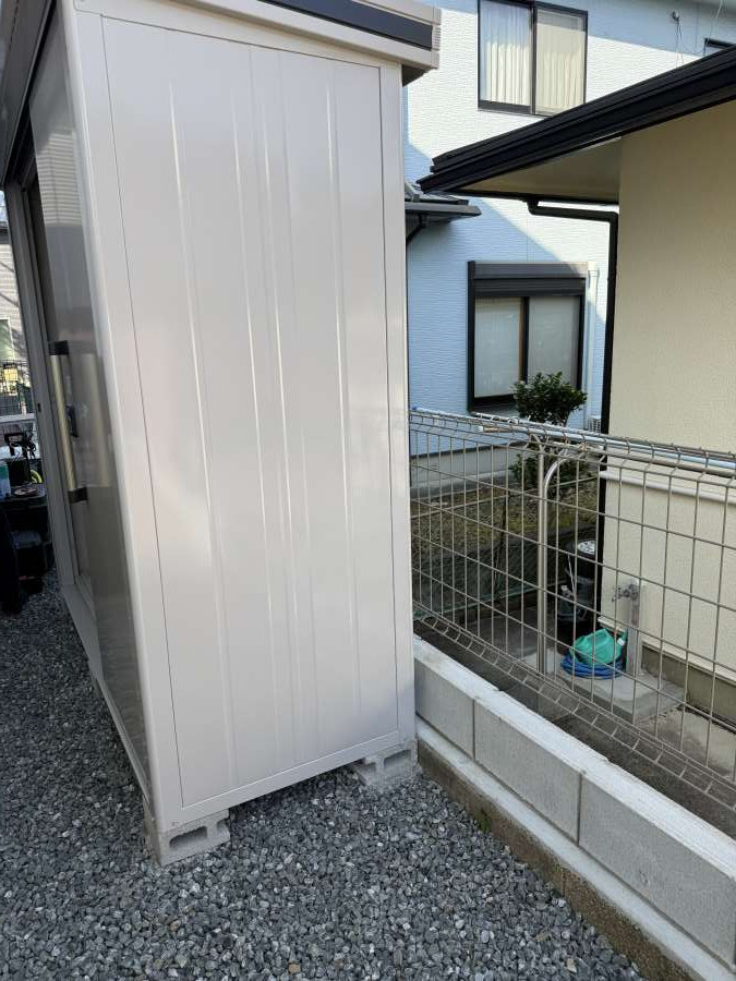 2026年1月、京都府の戸建て敷地内で、大型の物置を約1m移動する作業を13:00〜17:00で実施しました。